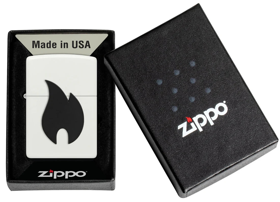 Les amateurs de contrastes seront séduits par cette version. Le blanc mat est rare, et c'est précisément ce qui lui donne l'allure d'un accessoire soigneusement choisi, et non d'un simple briquet. L'emblème de la flamme noire attire immédiatement le regard : graphique, moderne, presque comme un logo sans texte. Ce style s'adapte à de nombreux contextes : avec un look streetwear, un environnement de travail minimaliste, des tenues noires et blanches, ou tout simplement en contraste avec des objets sombres du quotidien. C'est un objet que vous serez fier d'exhiber, car il est à la fois épuré et original.