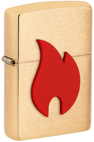 Schon auf dem ersten Bild wirkt das Feuerzeug wie ein kleines Statement-Stück: warmes, gebürstetes Messing mit dieser typischen, fein verlaufenden Strichstruktur, die das Licht weich bricht. Die Oberfläche sieht nicht „hochglanzpoliert“ aus, sondern bewusst zurückhaltend – dadurch wirkt der goldene Ton edel, aber nicht aufdringlich. Genau in der Mitte sitzt ein kräftig rotes Flammen-Emblem, deutlich erhaben und sauber konturiert. Das Rot ist satt und deckend, fast wie Lack, und hebt sich extrem klar vom goldenen Untergrund ab. Durch die leichte Dreidimensionalität entsteht ein schöner Schattenwurf – das Motiv wirkt nicht aufgedruckt, sondern wie ein echtes Designelement, das man auch mit den Fingern spürt.