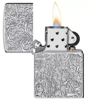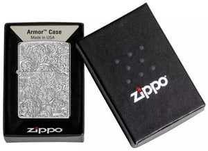 Die glänzende Oberfläche in High Polished Chrome sorgt für einen eleganten Spiegel-Effekt. Sie verleiht dem Feuerzeug eine moderne Ausstrahlung, die perfekt zu formellen Anlässen passt, aber ebenso im Alltag Akzente setzt. Dieses Finish bringt die tief gravierten Ornamente besonders stark zur Geltung und macht aus jeder Flamme ein stilvolles Statement.