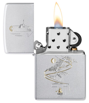 Die Oberfläche ist in einem sanft glänzenden Satin Chrome gehalten, das dem Feuerzeug eine edle, zurückhaltende Note verleiht. Der matte Schimmer sorgt dafür, dass Fingerabdrücke kaum sichtbar sind und das Design dennoch stilvoll hervorsticht.